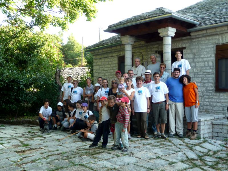 Vikos gorge with a total length of 12 kms is one of the world’s deepest canyons, its slopes full of rare flowers and herbs. In the cold Voidomatis springs, a little before ending the crossing and climbing to exit the gorge in the village of Vikos (Vitsiko village), having already walked for six hours, the most courageous took a bath.  The team also visited the Info point of the National Park of Northen Pindos (NATURA 2000) in Aspragelloi, as well as other neighbouring Zagori villages. We visited the waterfalls of Papigko, called Ovires,  and attended the inauguration ceremony of articles made of wood and of the Mushrooms collection held at the time in the Natural History Museum of Vitsa. A special t-shirt was given to all members of the team to bring it back home and to remind them of their accomplishment.